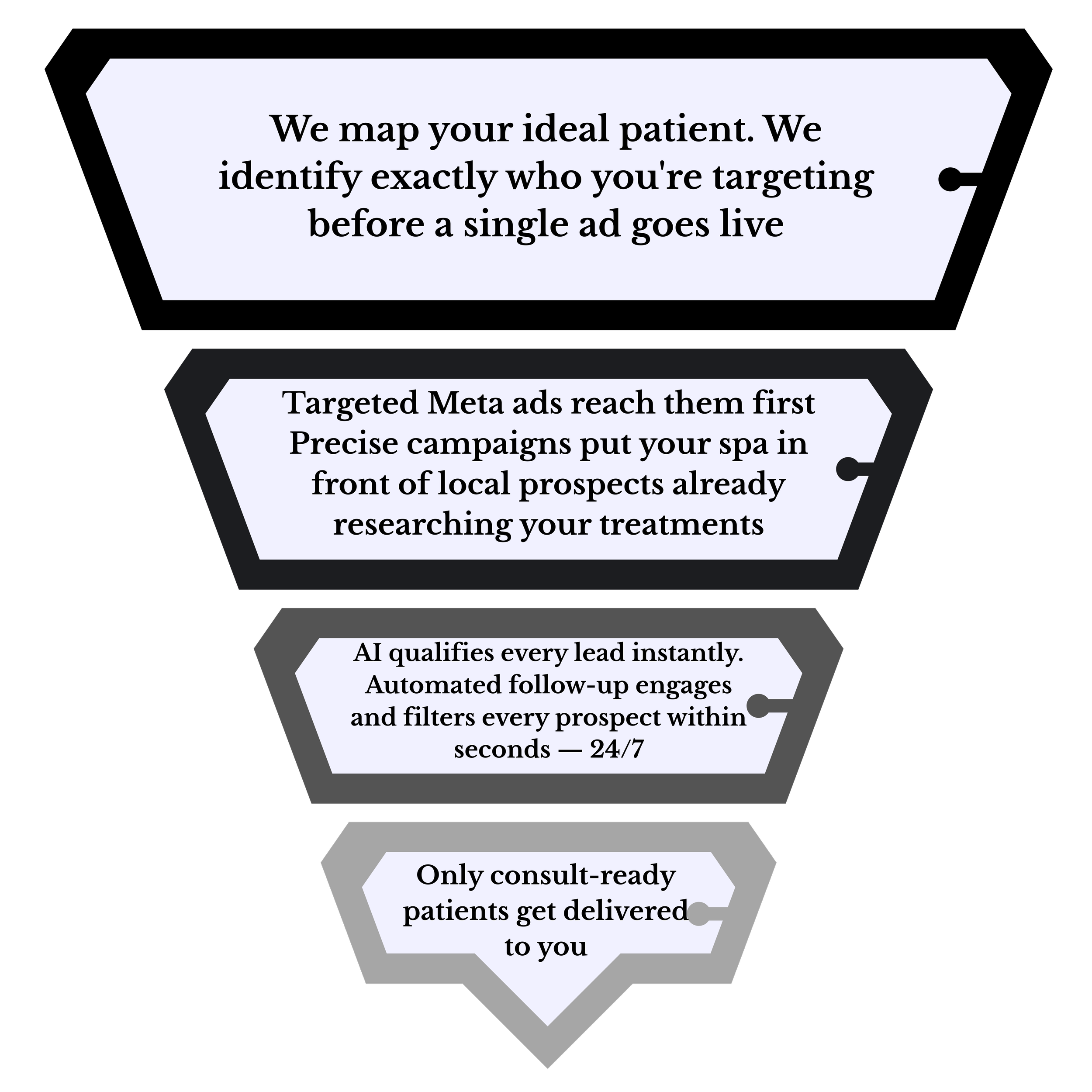 This isn't a generic lead generation service repurposed for aesthetics. Every part of the system — the targeting, the qualification questions, the follow-up sequences — is designed around how aesthetic patients think, research, and decide. We speak their language before they ever speak to you.